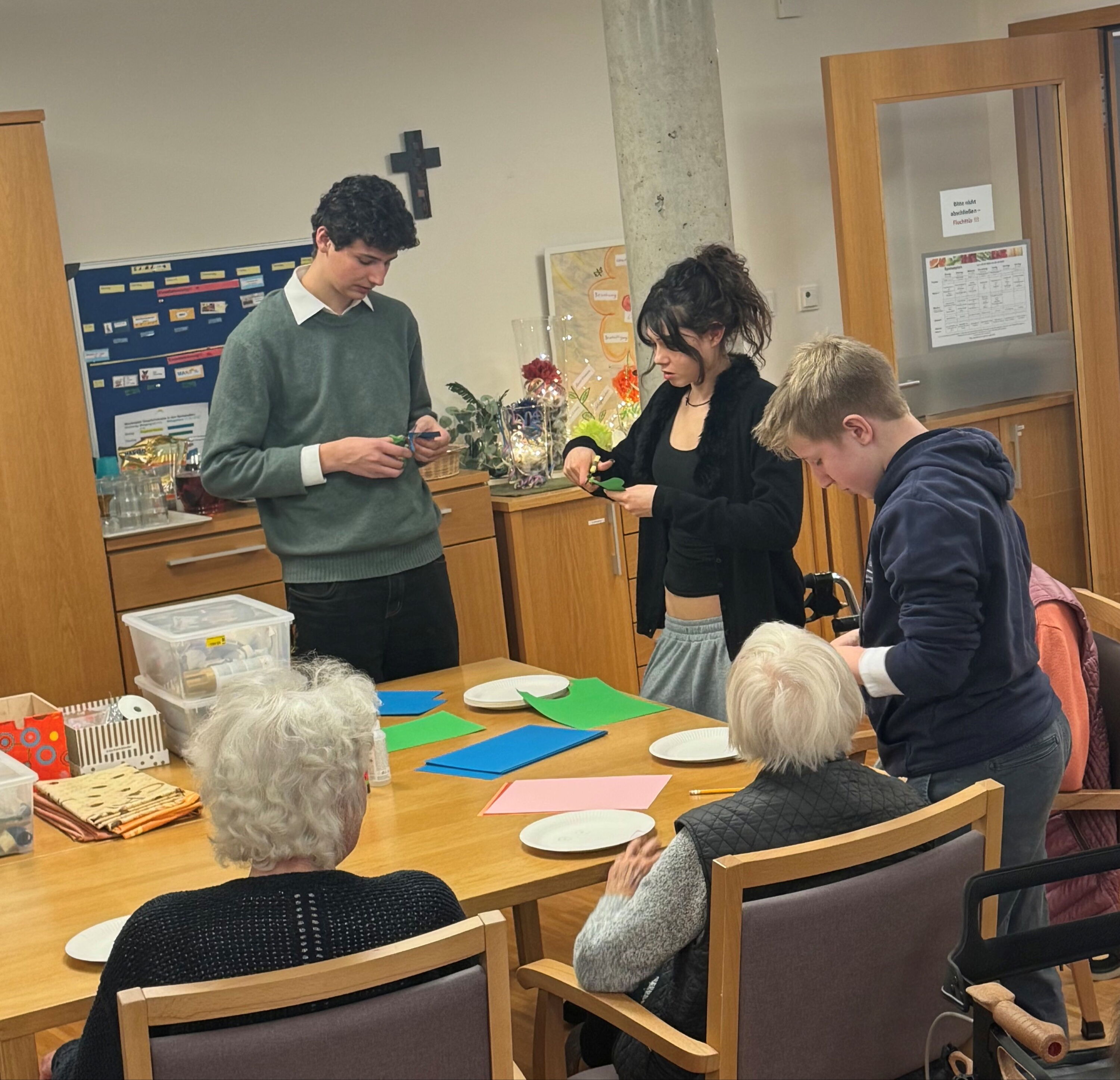 Die Jugendlichen verbrachten den Vormittag mit gemeinsamen Gesprächen, Spielen und kleinen kreativen Angeboten. Dabei entstanden viele persönliche Begegnungen, die von beiden Seiten als bereichern erlebt wurde. Die Bewohnerinnen und Bewohner freuten sich über die Abwechslung und das Interesse der jungen Gäste.