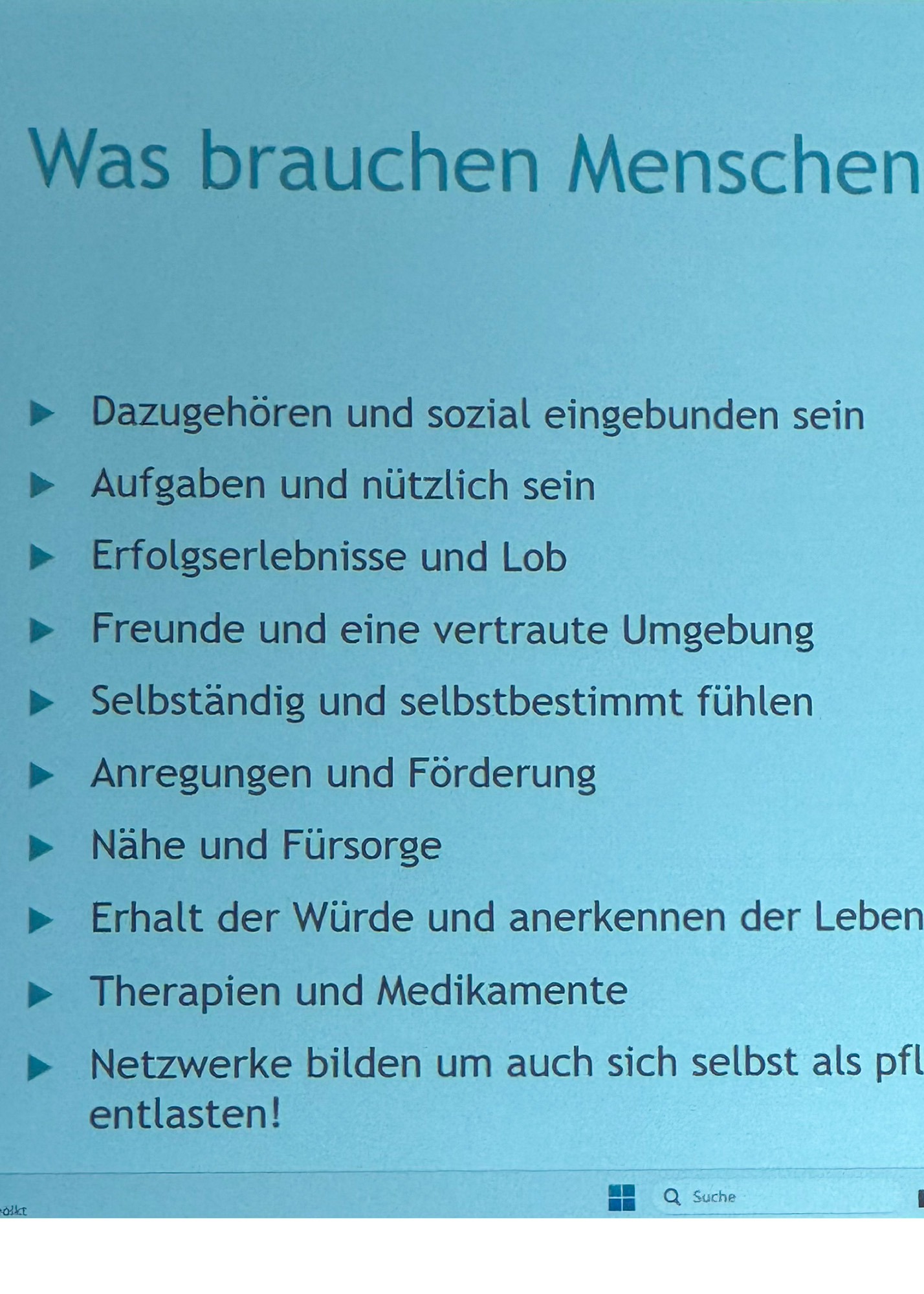 Die Referentin vermittelte den Zuhörenden zudem praktische Hinweise für den Alltag und zeigte auf, wie Angehörige Betroffene unterstützen können. Neben medizinischen Informationen standen auch soziale und emotionale Aspekte im Mittelpunkt. Besonders wertvoll war für viele Teilnehmende die Möglichkeit, Fragen zu stellen und persönliche Erfahrungen zu teilen.